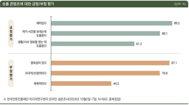향후 숏폼이 긍정적 요소와 부정적 영향을 적절히 조화시켜 건강한 미디어로 자리 잡기 위해서는 이용자의 인식 변화와 함께 이를 뒷받침하는 정책적 접근이 필요하다는 점도 함께 강조되었습니다.